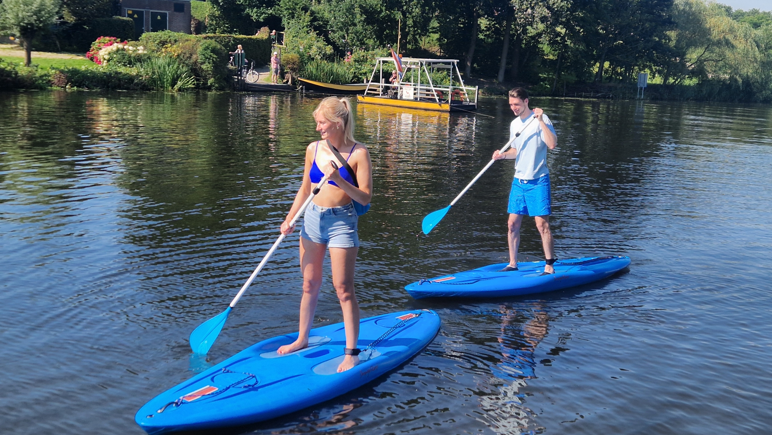 We hebben ook 3 professionele SUPs (2 volwassenen en 1 kindersup tot 60kg). Kom het eens proberen en geniet van de Linge op een sportieve manier!